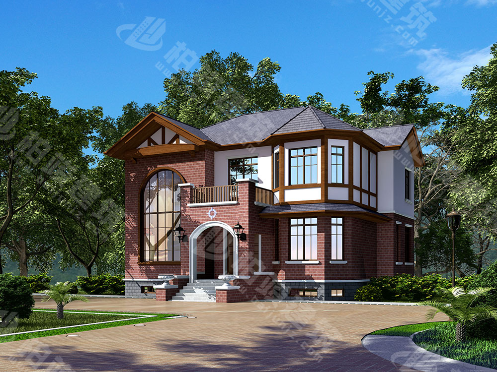 墙面涂装:大面积红砖墙的运用,营造如同林中猎户小屋的复古氛围;小范围白色素墙稍作中和,略添柔美;灰色小块面砖与屋顶造型呼应,加强统一感